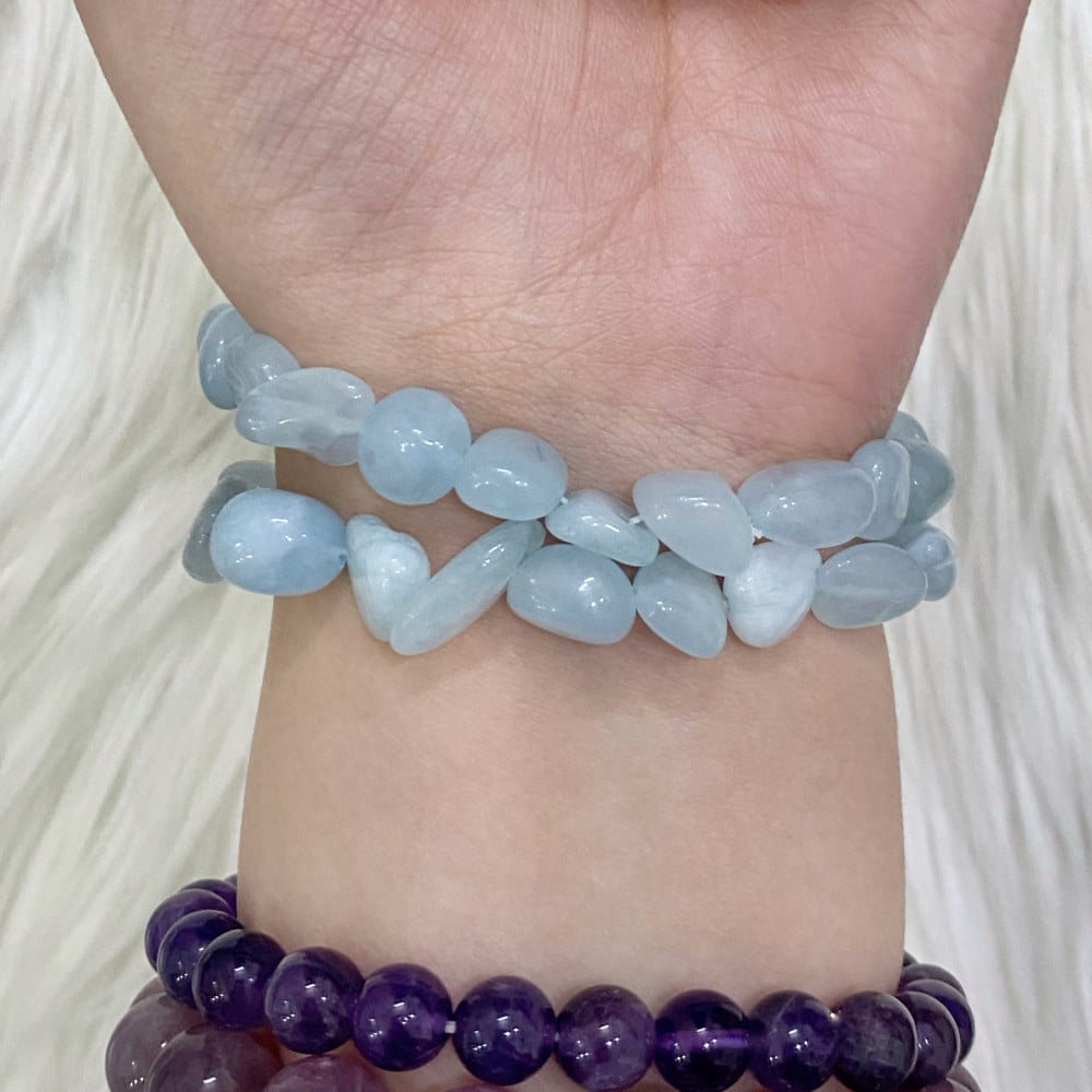 سوارة مصنوعة يدويًا من حجر الأكوامارين - خيط مطاط